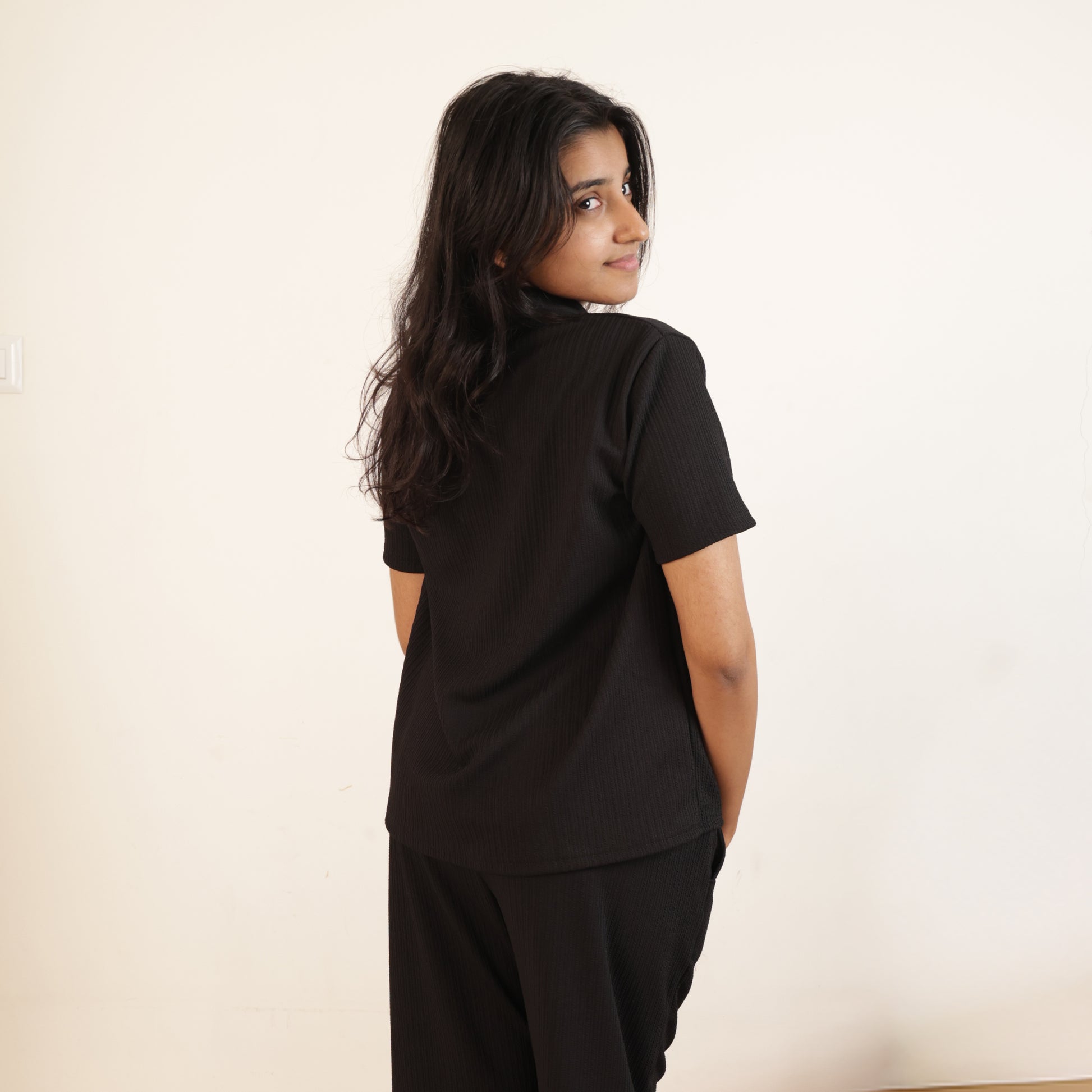 Sleep in comfort with this versatile cotton nightwear set, featuring a classic collar neck top paired with coordinating pants. Crafted from breathable cotton fabric, this ensemble offers the perfect balance of style and functionality for restful nights. The structured collar adds a polished touch, while the relaxed fit ensures unrestricted movement. Ideal for year-round wear, this set combines everyday practicality with understated elegance—a wardrobe essential for those who value quality sleep wear.