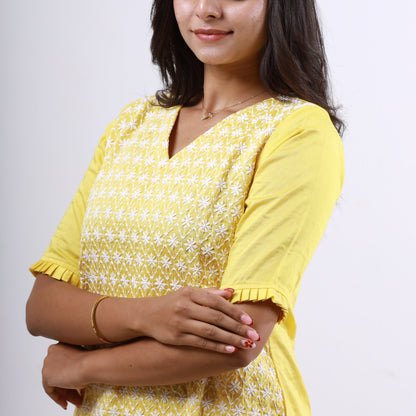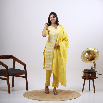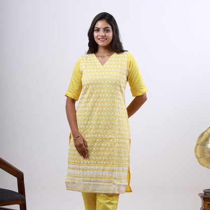 Elegantly hand-embroidered Chikankari on soft cotton fabric makes this set a wardrobe essential for everyday ethnic wear.