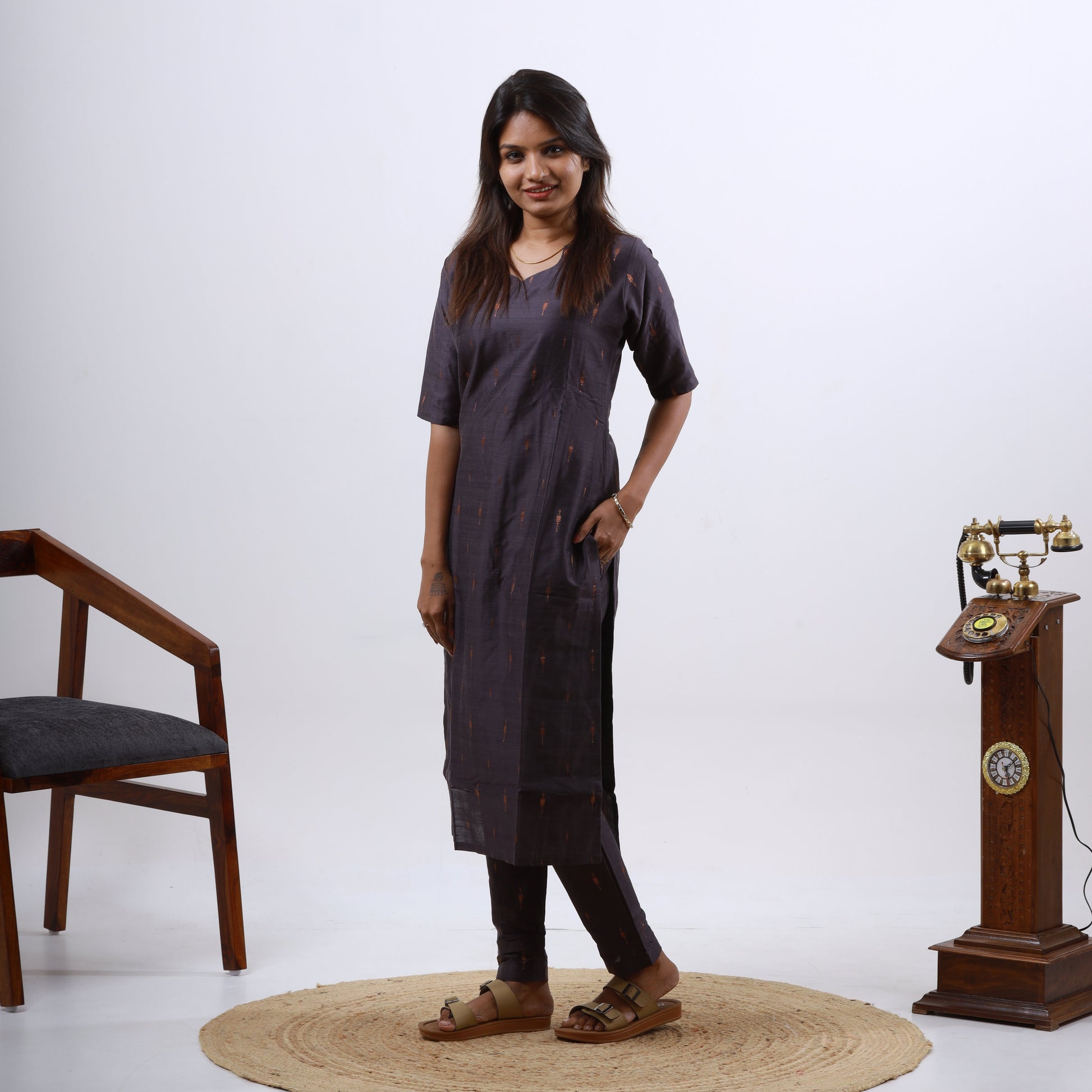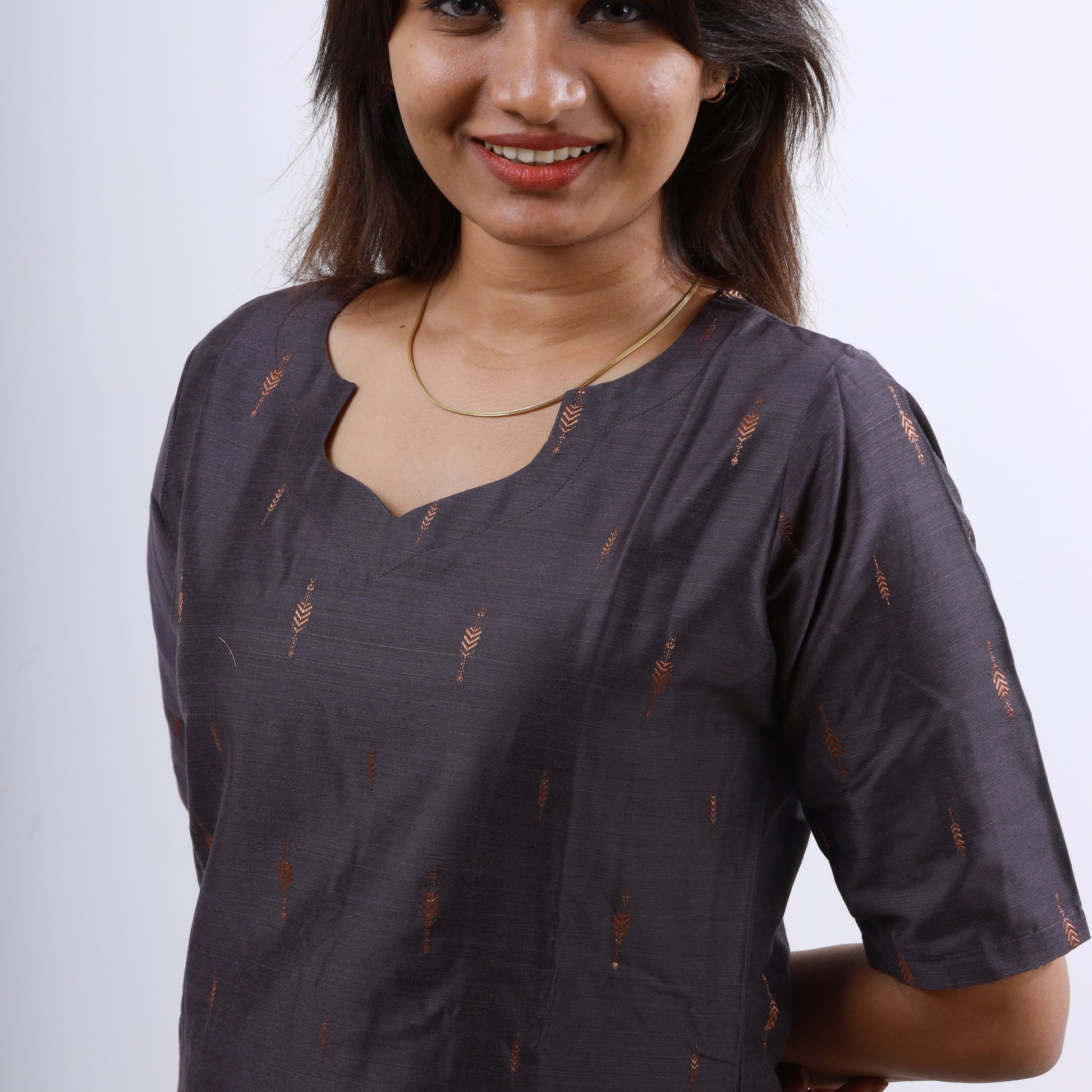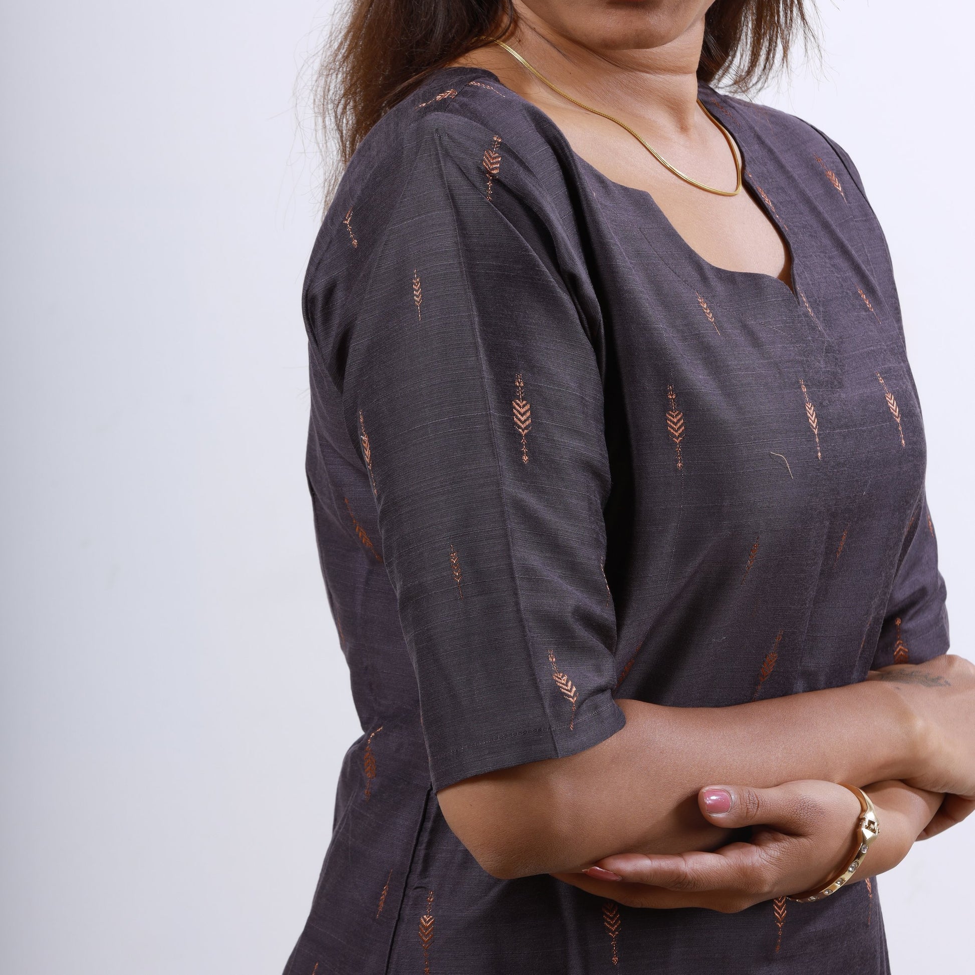 Raw Silk Slub Arrow Butta Copper Dupatta Set