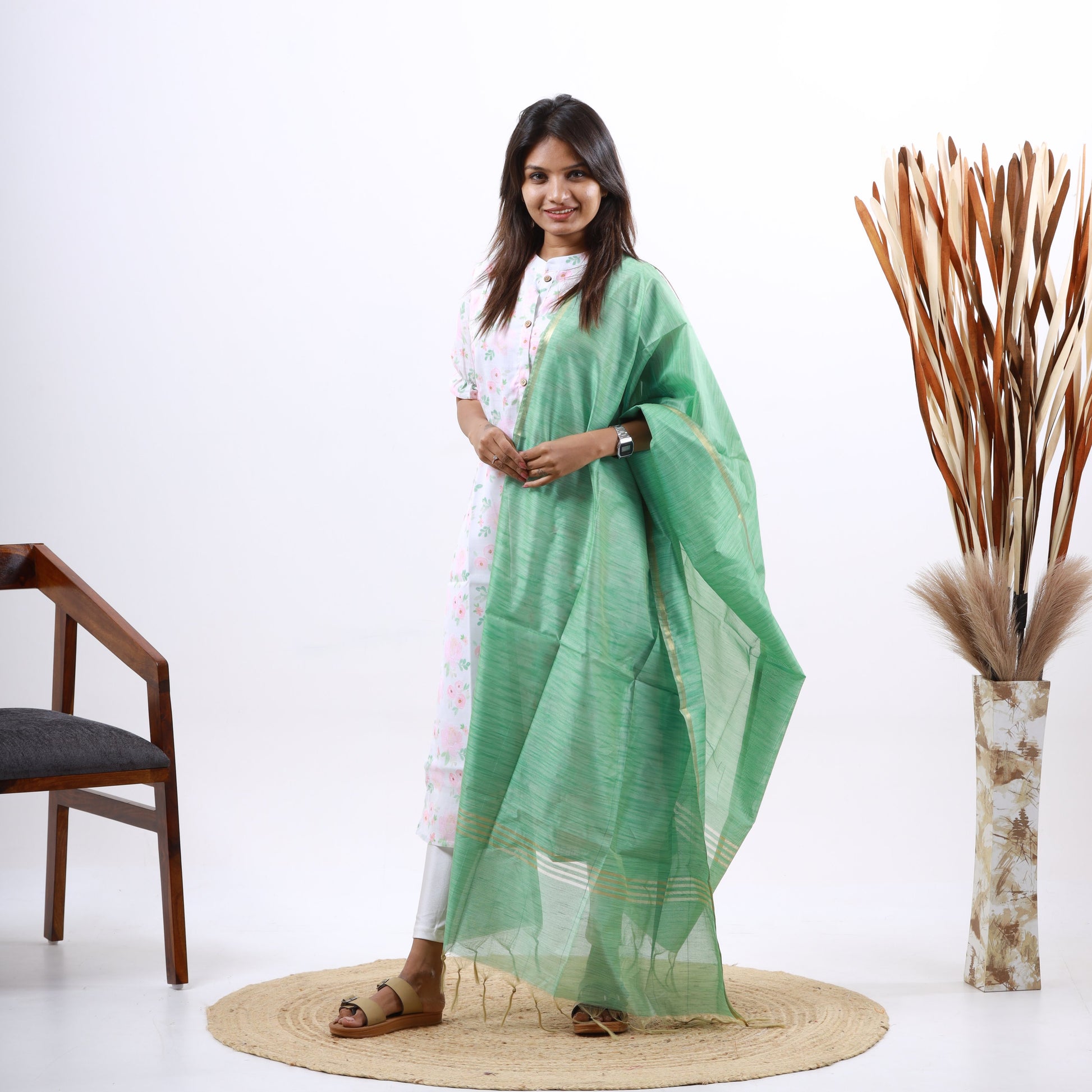 This raw silk top and dupatta set combines premium texture with subtle festive shine—an easy choice for traditional layering.