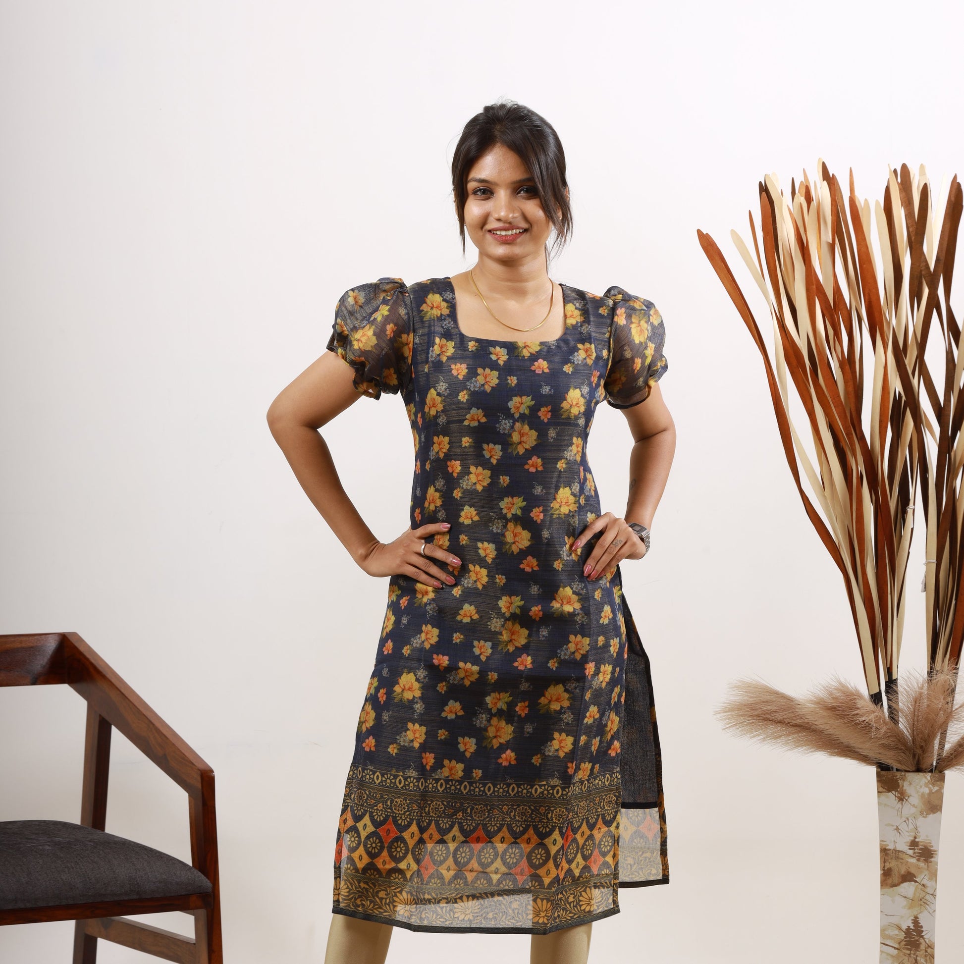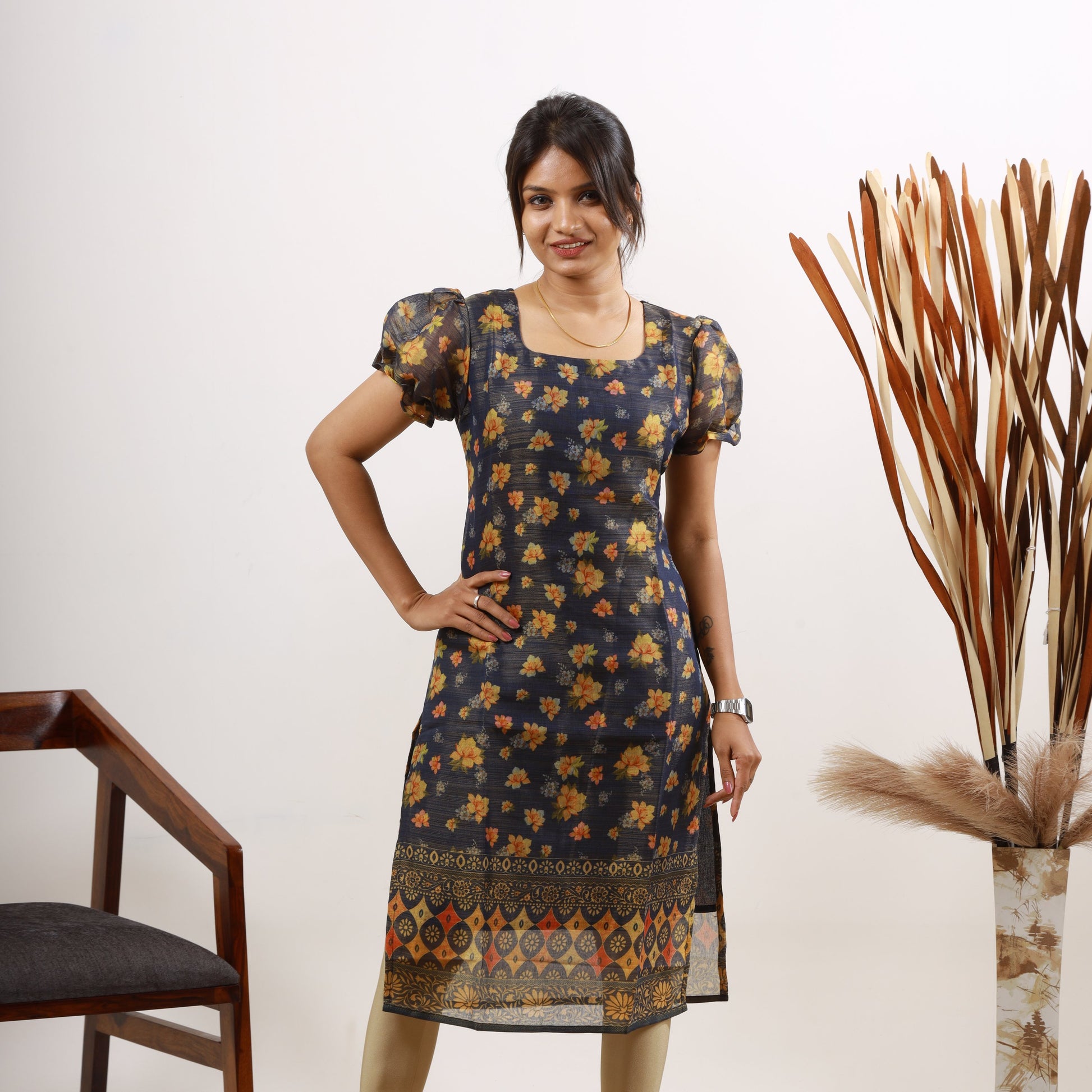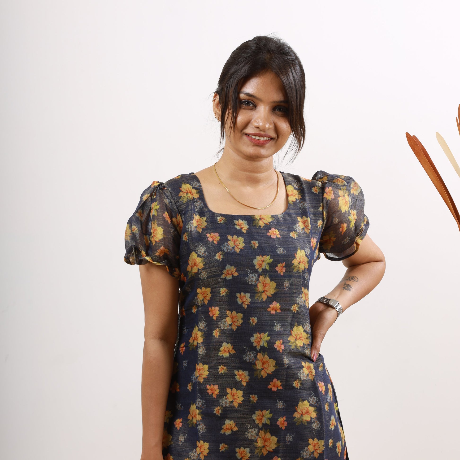 A lightweight tissue top adorned with soft allover prints—adds a hint of festive shimmer to your daywear without compromising on comfort or elegance.