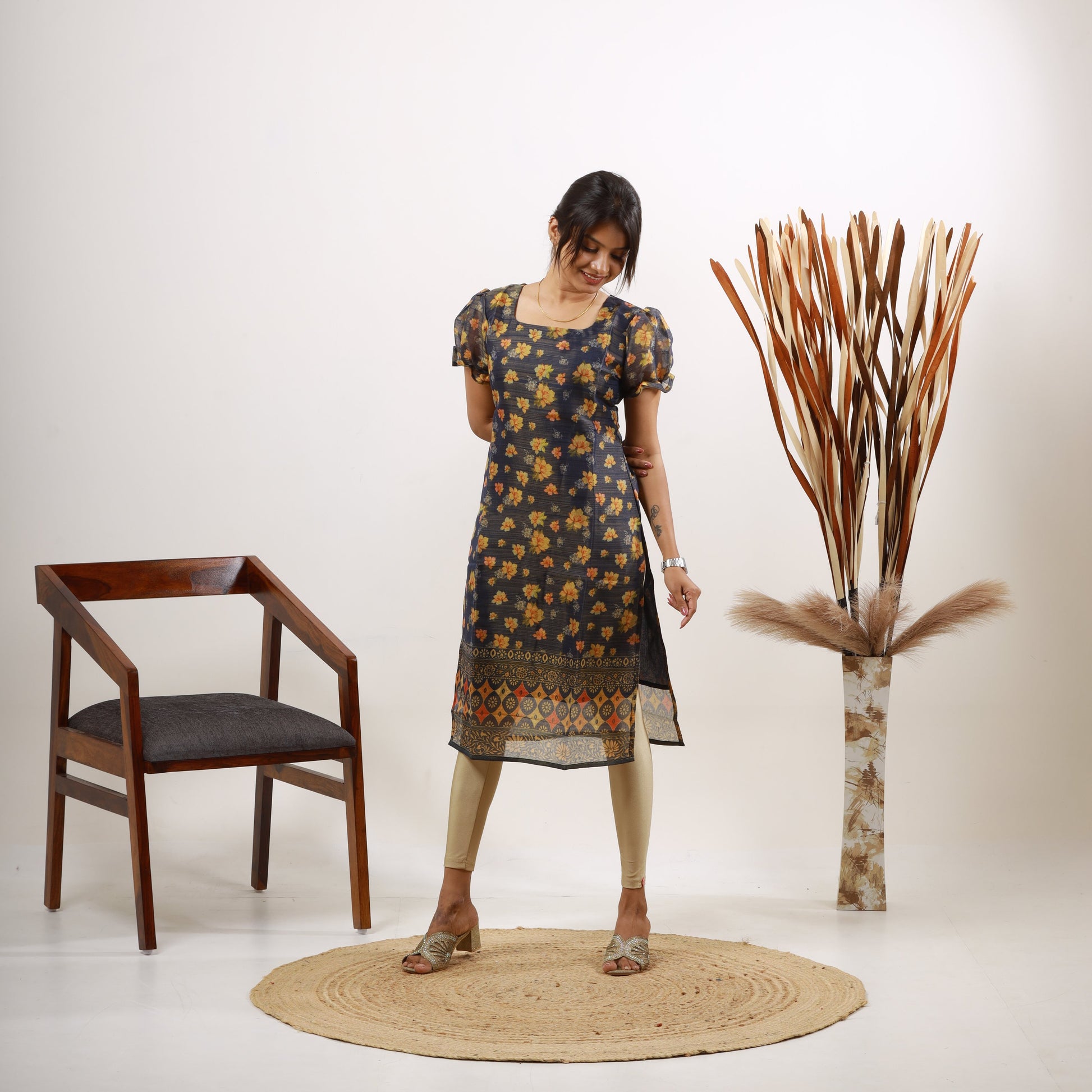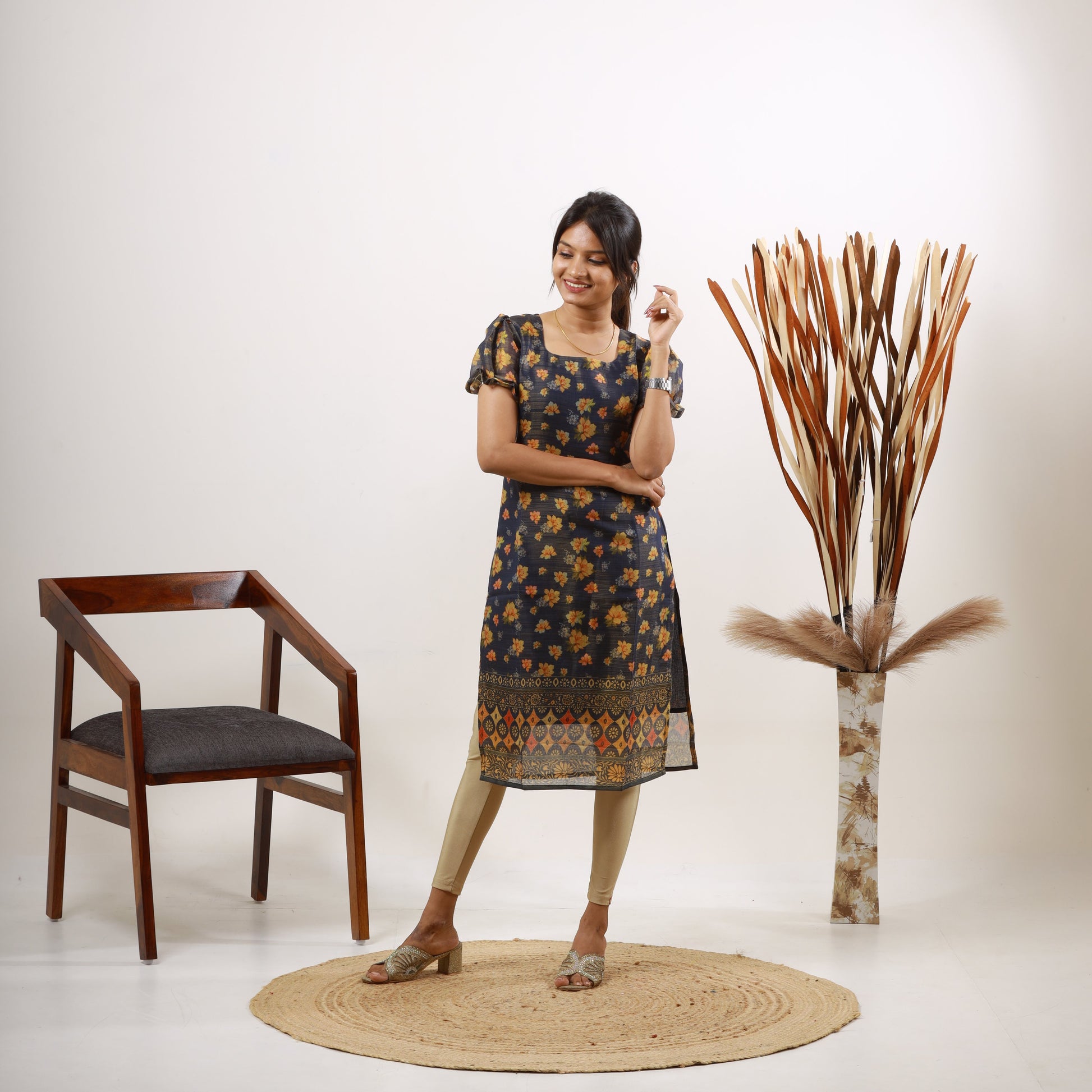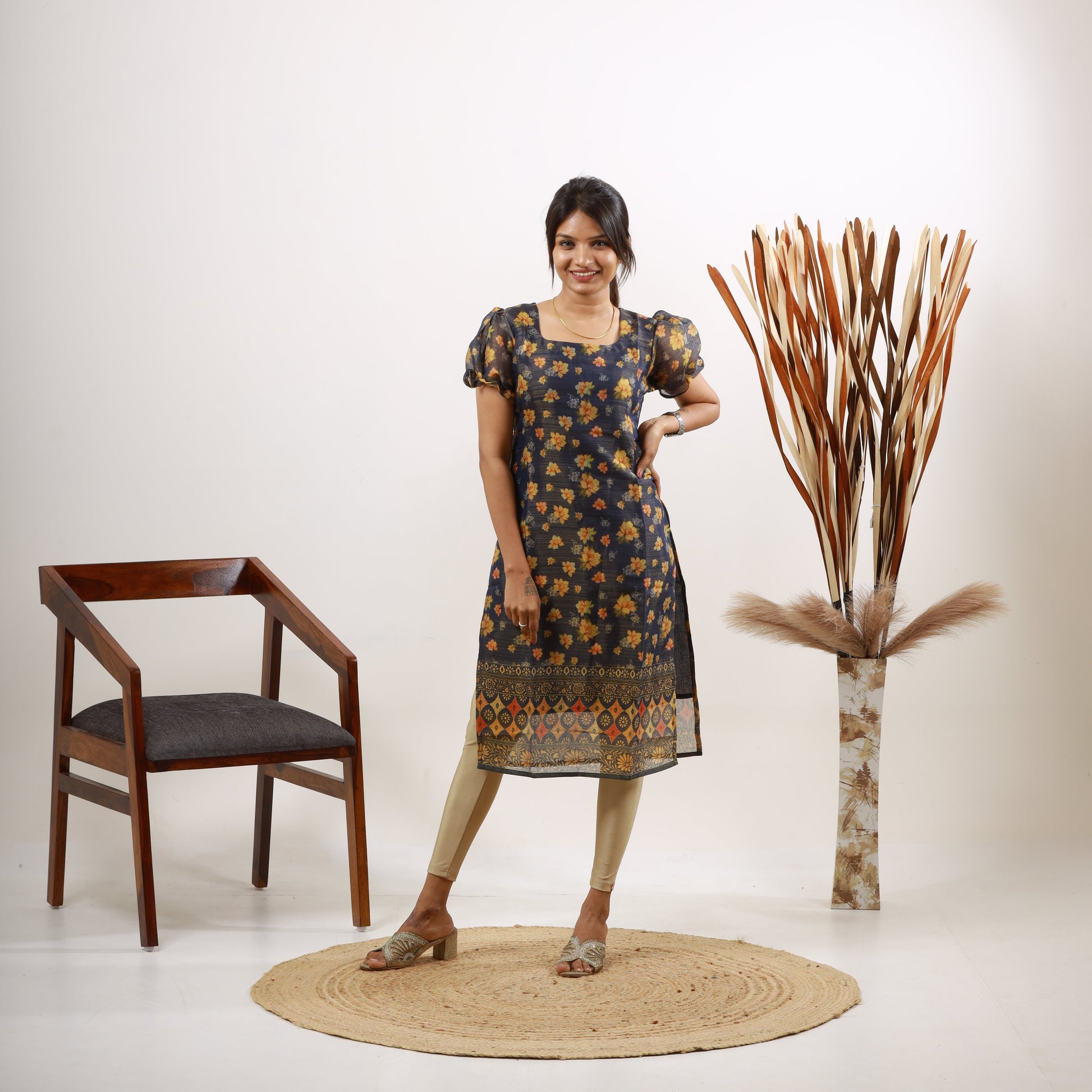 A lightweight tissue top adorned with soft allover prints—adds a hint of festive shimmer to your daywear without compromising on comfort or elegance.