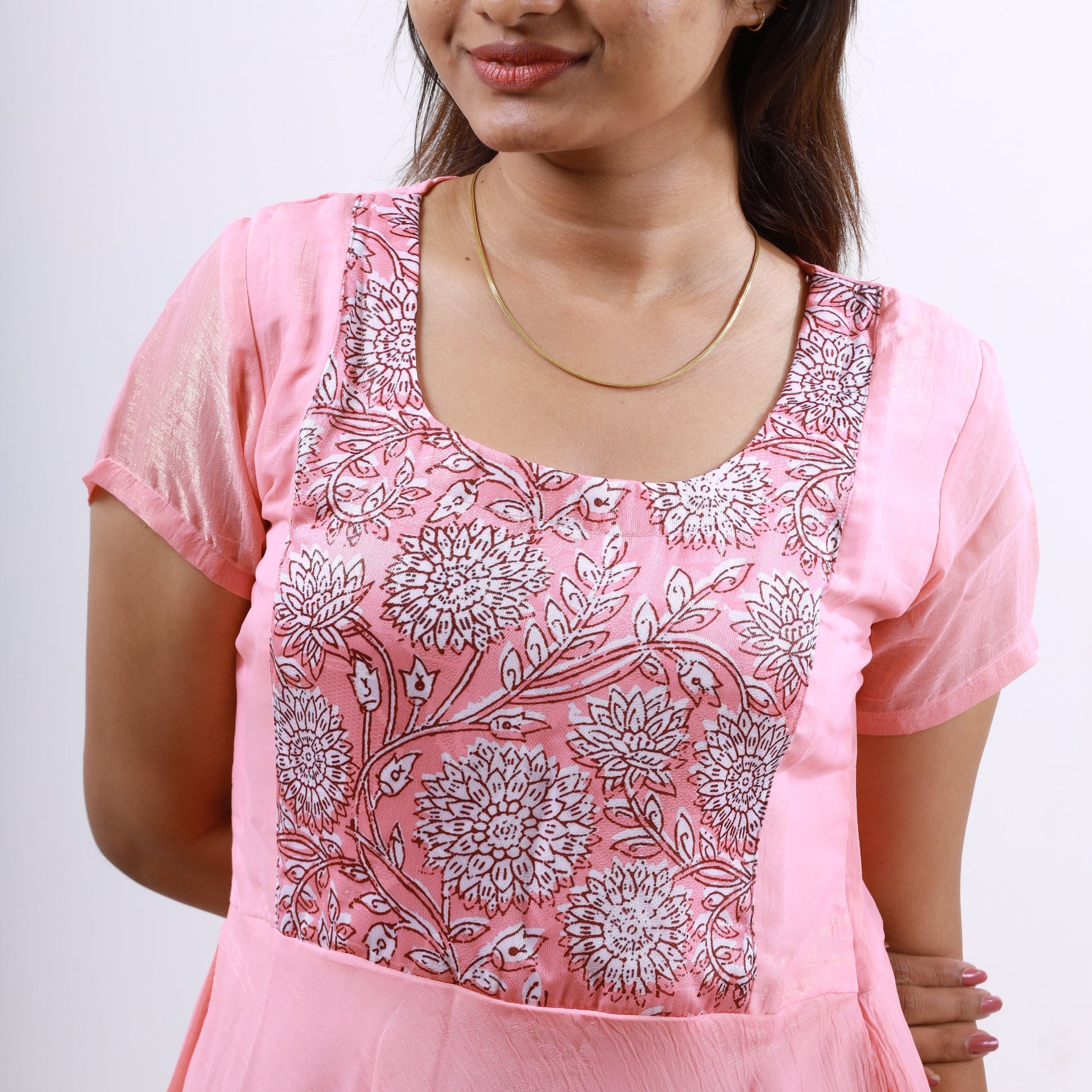Crushed tissue in soft tones brings a delicate, feminine flair to this maxi, ideal for festive looks or elegant daytime styling.